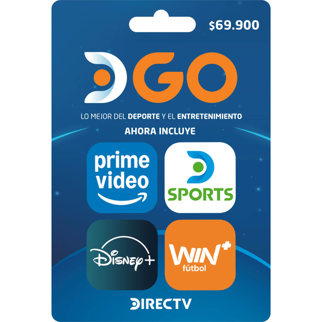 Aprovecha esta promoción única: con tu tarjeta DIRECTV GO (valor: 69.900) accedes a 3 apps de streaming en una sola plataforma – DIRECT Sports, Disney+, Win Fútbol y Paramount+. Todo el entretenimiento que amas, desde tu celular, TV o computador.